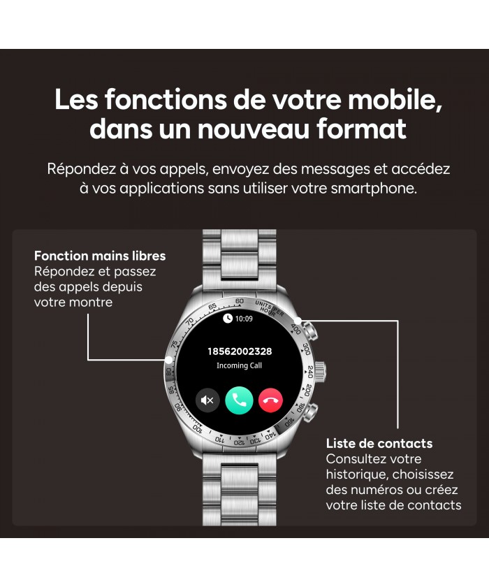 Tout ce dont vous avez besoin, toujours à portée de main : prenez vos appels, recevez des notifications, lisez vos messages, programmez des alarmes et bien plus encore ! De plus, laissez les assistants vocaux vous simplifier la vie. Gérez toutes vos fonctionnalités en toute simplicité avec les applications KSIX Plus et Da Fit.