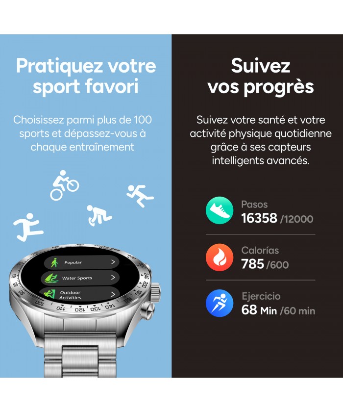 Gardez le contrôle de votre bien-être grâce à plus de 100 modes sportifs et au suivi continu de votre fréquence cardiaque, de votre oxygène sanguin, de votre sommeil, de vos pas et bien plus encore. Des aventures en plein air aux routines quotidiennes, elle est conçue pour vous accompagner à chaque étape.