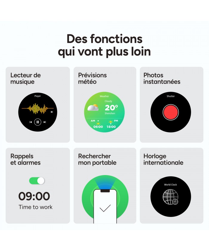 Écoutez et contrôlez la musique de votre téléphone directement depuis votre montre connectée. Consultez la météo, programmez des rappels ou localisez votre téléphone d'un simple geste. Découvrez des fonctionnalités conçues pour simplifier votre quotidien et le rendre plus connecté.