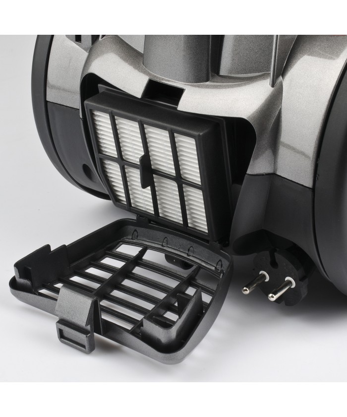 Compact et facile à ranger, l'aspirateur à cartouche ECO Design est également facile à conduire dans de petits espaces. Idéale pour ceux qui souffrent d'allergie et d'asthme afin de maintenir un environnement propre et sain, cette unité est équipée d'un double filtre HEPA pour capter les plus petites particules qui ne pourraient pas être piégées par les aspirateurs traditionnels. Grâce au système Cyclone avec une excellente force d'aspiration de 16 kPa, vous pouvez collecter la poussière, la saleté, les miettes et les débris en un seul mouvement qui, combiné à une faible consommation d'énergie (classe A), vous permettra de gagner du temps et de l'énergie (26 kWh / an). En plus de la brosse à plancher traditionnelle (pour les surfaces dures et les moquettes), les accessoires fournis incluent la buse multifonction, une solution parfaite pour nettoyer les endroits difficiles à atteindre, tels que les coins et les fentes entre les meubles.