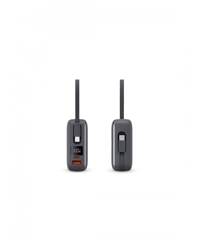 Il intègre des câbles USB-C et Lightning, vous permettant de recharger différents appareils sans câble externe. Idéal pour ceux qui recherchent une solution pratique et polyvalente.