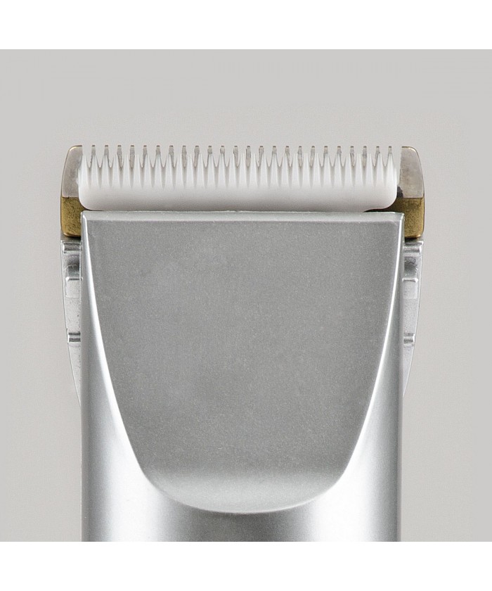 La barbe et la tondeuse RC55 représentent une aide professionnelle pour créer la coiffure parfaite pour chaque occasion. Équipé d'une lame en céramique détachable pour un nettoyage et une maintenance faciles et une lame fixe en titane pour assurer des résultats professionnels, cette unité est capable de satisfaire pleinement tous les besoins de l'homme moderne. Très confortable à utiliser grâce à sa double fonction cordon et sans fil, cette tondeuse assure un temps de fonctionnement d'une heure après une charge complète de 90 minutes seulement. Pour mieux définir votre look et votre coiffure, cette tondeuse est équipée de 4 peignes de coupe avec une régulation de coupe de 0,8 à 2 mm.