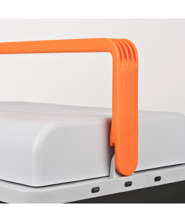 Le récipient de 20 litres peut contenir jusqu'à 27 canettes et, grâce à sa hauteur, il peut également accueillir des bouteilles d'eau de 1,5 litre ; un séparateur est également prévu pour créer 2 compartiments. La poignée large et pratique permet de transporter le réfrigérateur et de serrer le couvercle, permettant une meilleure isolation thermique.