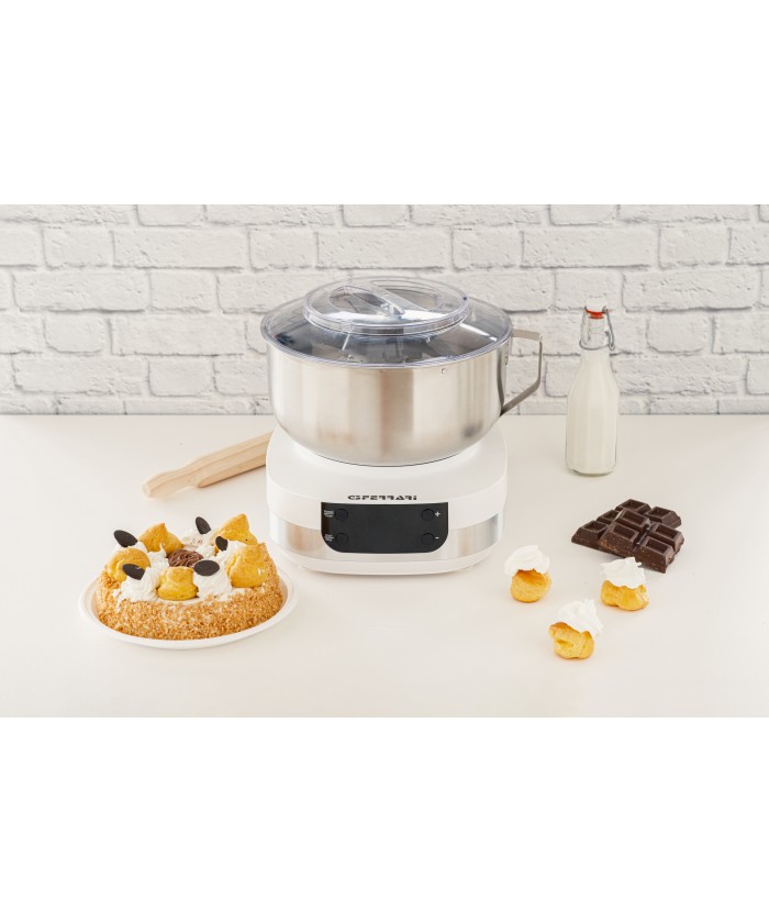 Pastaio Gourmet est le batteur sur socle qui vous aide à réaliser des pâtes sucrées et salées, des crèmes, des gâteaux et des desserts, sans effort et avec d'excellents résultats. La conception a été étudiée pour avoir une machine stable et compacte, mais en même temps spacieuse et facile à utiliser. Grâce à son moteur efficace et à son mouvement planétaire spécial, vous pourrez également préparer de la pâte à pain, à pizza et à pâtes. Dans la préparation des crèmes et des desserts, les fouets et mixeurs travaillent en synergie avec les spatules en silicone, pour obtenir un résultat homogène et sans grumeaux.