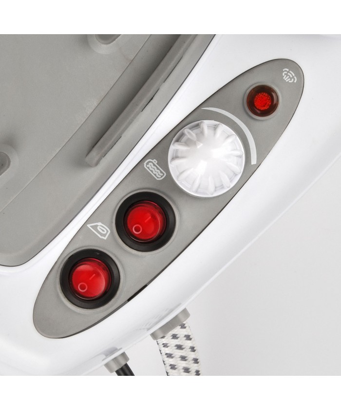 Repassage professionnel et sécurité garantie avec ST03. Grâce au puissant jet de vapeur continu et au thermostat réglable à différents niveaux, ce système de repassage polyvalent s'adapte facilement à une grande variété de tissus: de la soie au coton, du synthétique au lin. Le fer est équipé d'une plaque en aluminium pour une répartition uniforme de la chaleur avec une poignée en liège souple très confortable même pour les gauchers, tandis que le réservoir peut contenir jusqu'à 700 cc d'eau pour une longue autonomie de repassage.