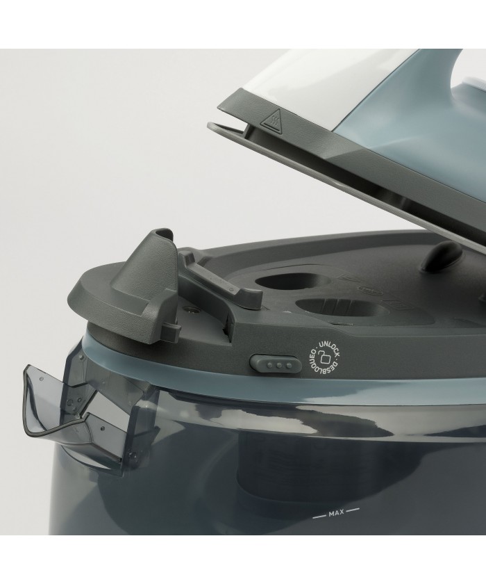 Le système de repassage SS04, grâce à son système innovant de repassage en continu, permet de remplir le réservoir à tout moment et sans longs temps d'attente pour que la chaudière refroidisse. D'une puissance de 2200W et d'une pression de 3 Bar, il génère une vapeur puissante et constante avec un volume allant jusqu'à 100 g/min.