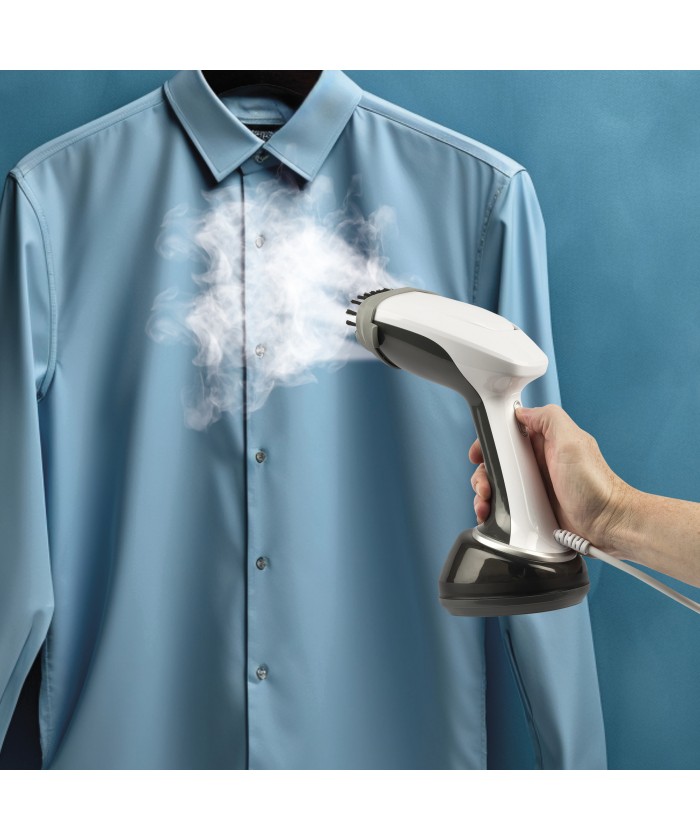 Léger et compact, il est également excellent comme fer à repasser de voyage portable, et grâce à son corps équilibré et maniable, vous pouvez repasser facilement et sans effort. Les accessoires inclus sont la brosse à poils et le verre doseur.