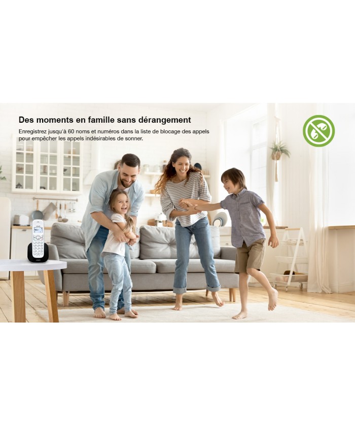 La fonction Call Blocker* vous permet de bloquer les appels importuns et les appels provenant de numéros inconnus. Bloquez jusqu'à 60 numéros sur liste noire**