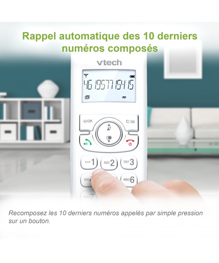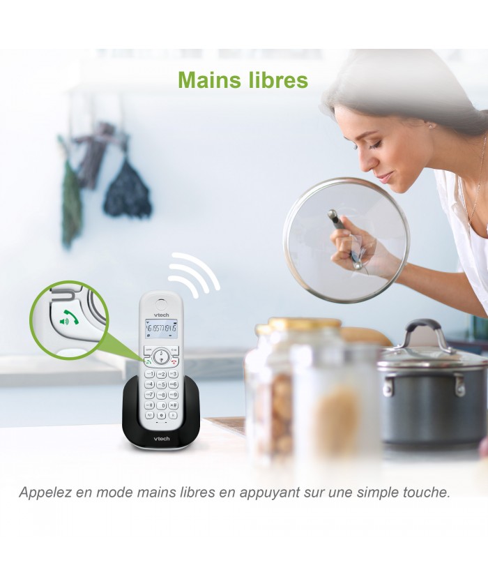 Appels mains libres faciles sur simple pression d'un bouton, vous permet de passer ou de recevoir un appel sans avoir à tenir le combiné sans fil.