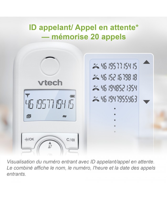 Voyez qui vous appelle avec l'identification de l'appelant*/l'appel en attente. Le combiné affiche le nom, le numéro, l'heure et la date des appels entrants.