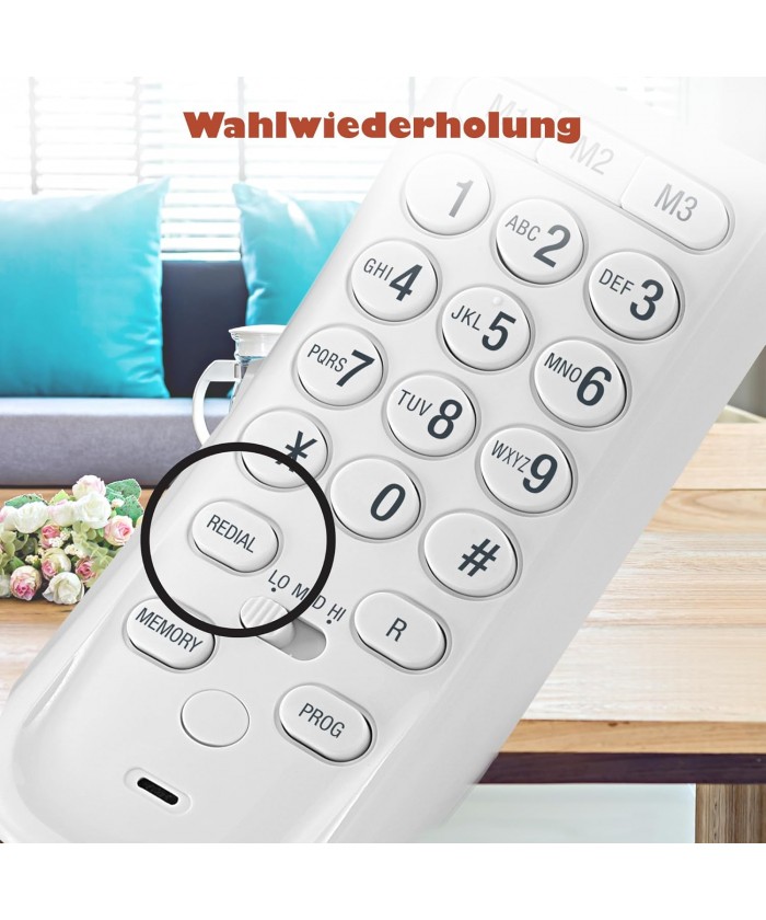 Amplificateur de volume : Le son/la voix d'entrée est amplifié(e) pour améliorer la clarté et le volume de la voix sur le téléphone fixe filaire. Il convient parfaitement aux utilisateurs malentendants ou aux utilisateurs de téléphones à domicile qui préfèrent un volume plus élevé.