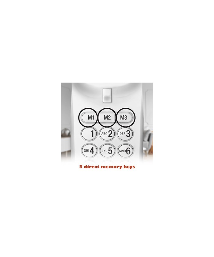 Autres fonctions : écran et clavier rétro-éclairés, répertoire téléphonique de 100 noms et numéros, 8 touches de numérotation rapide, fonction mains libres.