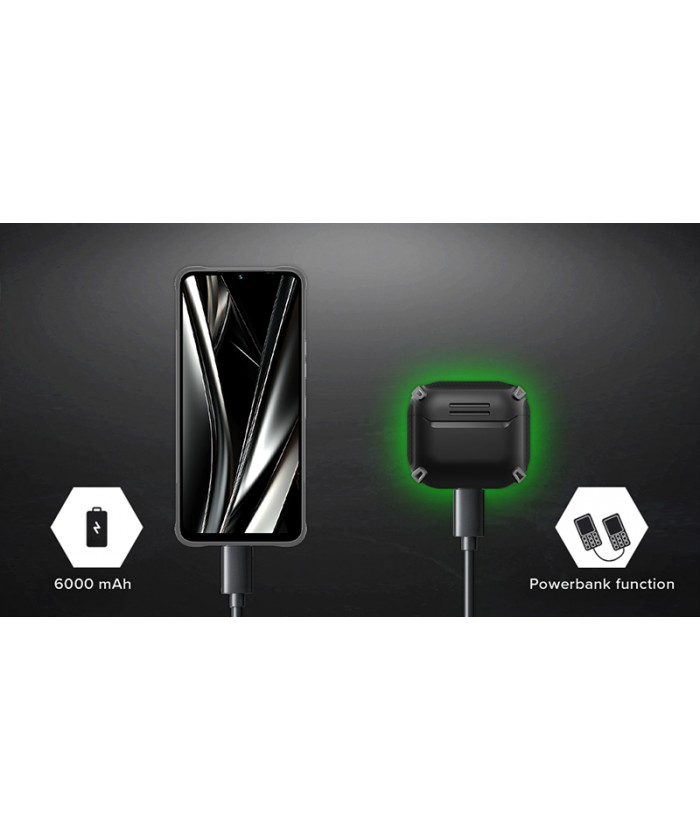 Batterie puissante Le HAMMER BLADE Va 5G est alimenté par une batterie de 6 000 mAh qui permet 17 heures d'autonomie en conversation et jusqu'à 18 jours en mode veille. De plus, grâce à la fonction powerbank, le smartphone vous permet de partager de l'énergie avec vos proches lorsque leurs appareils sont à court d'énergie. ou le fichier vidéo « 4 »