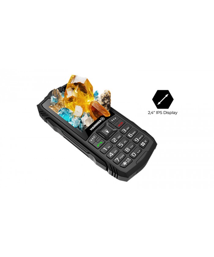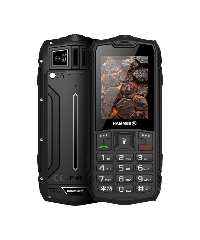 HAMMER Rock LTE est un téléphone qui n'a peur de tous les défis - il est aussi résistant qu'un outil de travail et aussi fiable qu'un couteau suisse. Sa conception robuste et son écran IPS incassable de 2,4 pouces le rendent idéal pour les environnements difficiles.