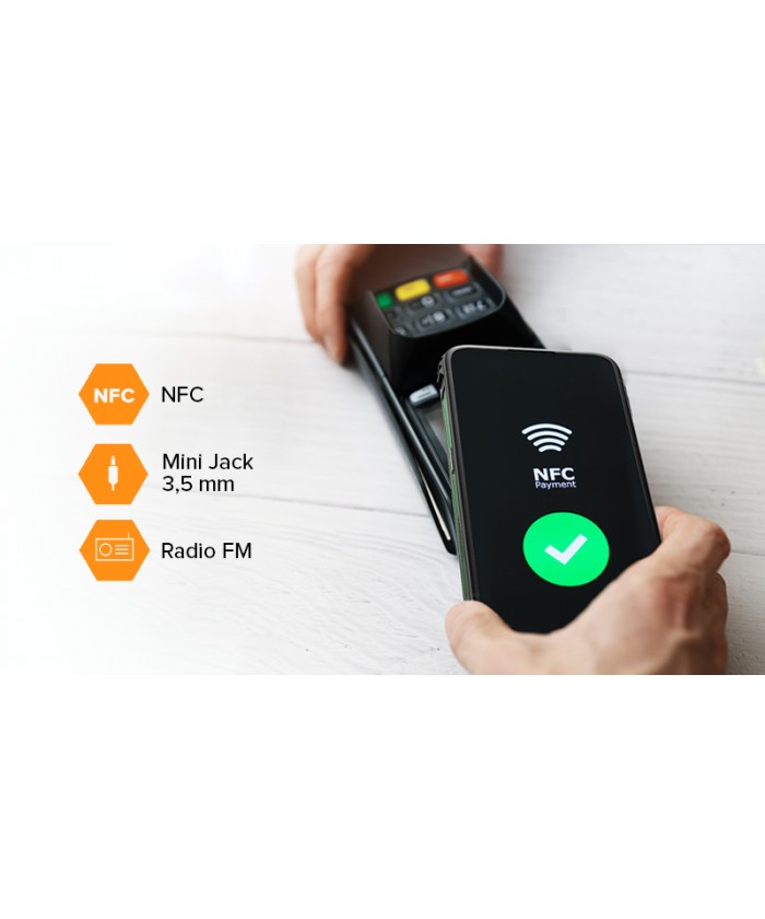 NFC pour les paiements rapides, mini-jack 3,5 mm pour écouteurs classiques et touche HAMMER pour des raccourcis vraiment utiles sur le terrain.