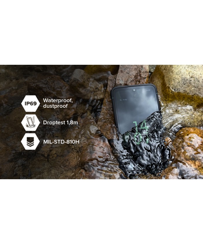 Un téléphone pour ceux qui ne demandent pas si ce sera difficile, mais où mène le prochain sentier. Écran IPS de 6 pouces, construction renforcée, certification IP69, norme MILSTD810H et coque arrière amovible avec batterie remplaçable. Conçu pour la pluie, la boue, les sentiers rocailleux et les expéditions au cœur de la nature.