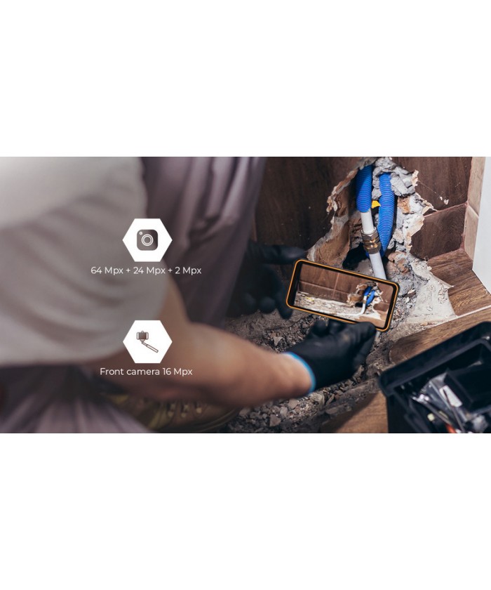 L’appareil photo de 64 MP avec capteur SONY et l’objectif macro de 2 MP permettent de saisir chaque détail - idéal pour documenter le travail ou prendre des photos du quotidien. Le smartphone dispose aussi d’une caméra frontale de 16 MP pour des selfies nets et des appels vidéo clairs.