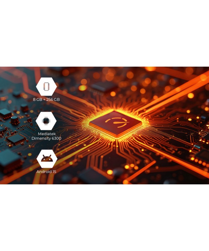 Le smartphone fonctionne avec fluidité et rapidité grâce au processeur à 8 cœurs MediaTek Dimensity 6300 et à 8 Go de RAM. Android 15 offre des fonctionnalités modernes et une interface intuitive, tandis que 256 Go de mémoire interne permettent de stocker facilement applications, photos et fichiers professionnels.
