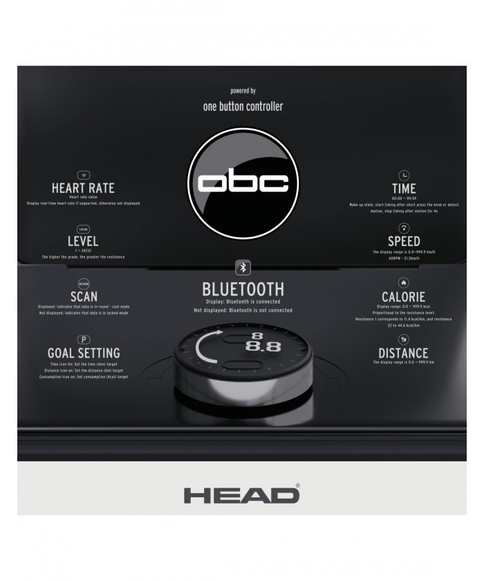 Entraînez-vous en toute conscience grâce à la technologie du tapis de course HEAD. Mesurez votre fréquence cardiaque, suivez les calories brûlées, le temps d'entraînement, la vitesse ou la distance parcourue facilement depuis son écran LED intégré.